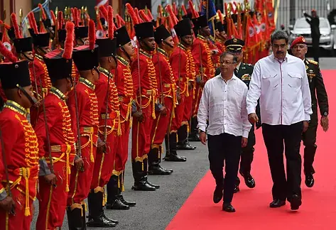 Image is of Venezuela’s Maduro and Colombia’s Petro walking together at the Miraflores Palace in Caracas in 2022, sourced from this article.