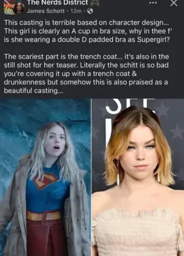 I think they’re saying they don’t look correct and are trying to hide it by using a trenchcoat? And a movie can’t be enjoyed if major female characters have a role other than being tits on screen?