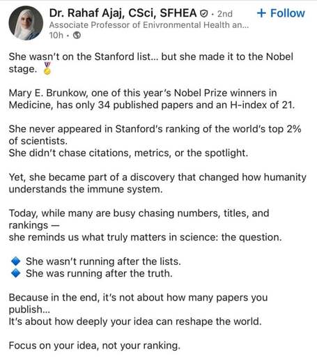 I had colleagues going to someones courses or presentation just because that persom had high publications score, no care about if it’s even interesting what that person did.