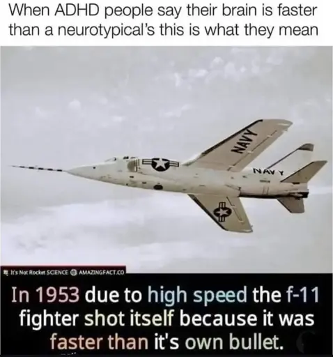 Stamets@lemmy.dbzer0.com to ADHD memes@lemmy.dbzer0.comEnglish · 7 days agos p e e d ylemmy.dbzer0.comimagemessage-square1linkfedilinkarrow-up198arrow-down10