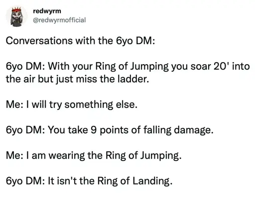 he’s correct though, at least as far as i can tell with rules as written. you’d at least need an athletics check or dex save