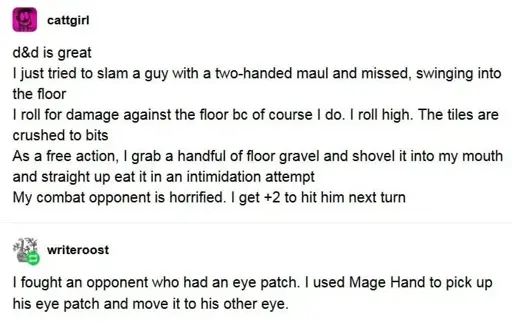 Stamets@lemmy.dbzer0.com to RPGMemes @ttrpg.network · 6 days agoPossibilities are endlesslemmy.dbzer0.comimagemessage-square0linkfedilinkarrow-up1186arrow-down11