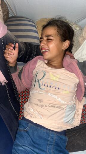 Today, without any introduction, this picture alone shows my sister Montaha’s struggle with illness. She is now in pain and suffering, writhing from the intensity of the disease in her mother’s arms, who tries to comfort her by gently stroking her head.