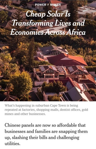 Multiply her hack by the thousands and you have what South Africans call Eskom’s “death spiral.” Well-off customers lower their bills with solar, which causes Eskom to lose money, which in turn forces Eskom to raise prices and encourages more people to install solar.